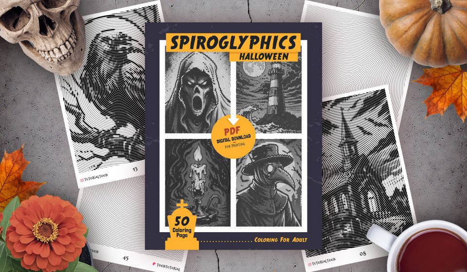- Halloween PDF: This is the main event! Inside, you’ll find 50 unique Spiroglyphics coloring pages with spooky Halloween themes. Each one is a swirling mystery waiting for your touch of color.