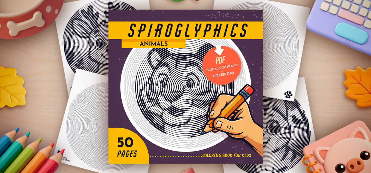 These printable worksheets are the official digital companion to my book “Spiroglyphics Animals Coloring Book“ – featuring all 50 adorable animals hidden within mesmerizing spiral patterns.
